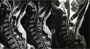 Instead of an isolated nerve, when the entire spinal cord is pressed from a slip disc, osteophyte (bony overgrowth) or ligamentous overgrowth; this condition is referred to as Cervical Myelopathy. This is a serious condition, which needs to be recognized and addressed as early as possible. Otherwise, it can result in irreversible paralysis.